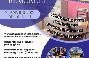 Ces portes ouvertes seront l’occasion de visiter les locaux, d’échanger avec les enseignants et de mieux comprendre les pratiques mises en place pour permettre à chaque enfant de grandir, d’apprendre et de s’épanouir dans un environnement bienveillant et stimulant.