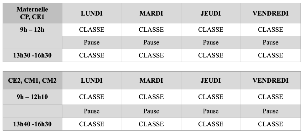L’école ferme ses portes à 9h. Merci de bien respecter cet horaire.